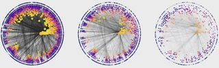 We study spatial search with continuous-time quantum walks on real complex networks. We use smaller replicas of the Internet network obtained with a recent geometric renormalization method introduced by García-Pérez et al. (2018). This allows us to infer for the first time the behavior of a quantum spatial search algorithm on a real complex network. By simulating numerically the dynamics and optimizing the coupling parameter, we study the optimality of the algorithm and its scaling with the size of the network, showing that on average it is considerably better than the classical scaling $O(N)$, but it does not reach the ideal quadratic speedup $O(\sqrt{N})$ that can be achieved, e.g. in complete graphs. However, the performance of the search algorithm strongly depends on the degree of the nodes and, in fact, the scaling is found to be very close to optimal when we consider the nodes below the 90th percentile ordered according to the degree.